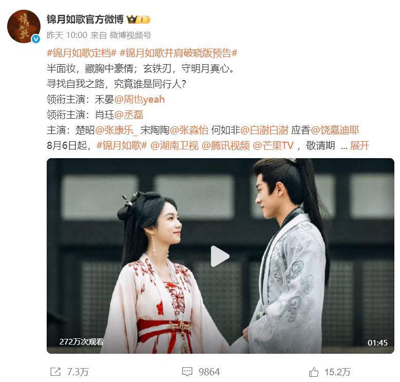 《锦月如歌》官宣定档后,李姓演员刚登上热搜,后头出现“爆”字,笃信仍是解决好后续问题,诸君读者,看到《锦月如歌》官宣定档后,你们期待这部剧吗?你觉得它有望成为爆剧吗?